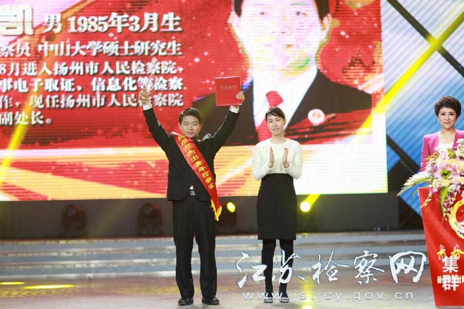 在扬州市杰出青年检察官颁奖现场,王凯登台领奖