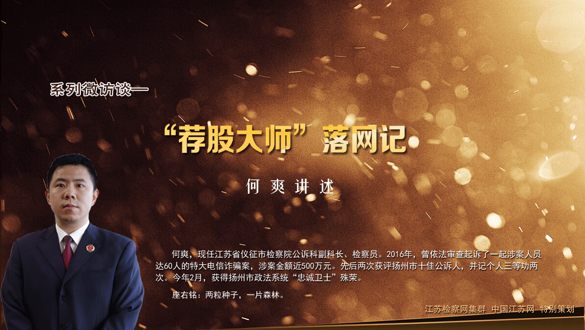 依法查办的一起典型案例。2015年3月,仪征市公安局接到一名中年女士报案,声称自己在网上炒股的时候,被所谓的“股票专家”骗了200多万元。这名报警女士有点语无伦次,情绪焦灼激动。