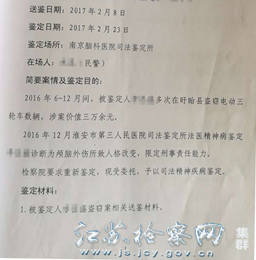 2016年7月,江苏淮安盱眙县城区电动三轮车多次“失踪”,经过警方蹲点发现犯罪嫌疑人竟是“老熟人”,这本是简单的一起盗窃案,但却因为一份精神病鉴定意见书变得扑朔迷离……