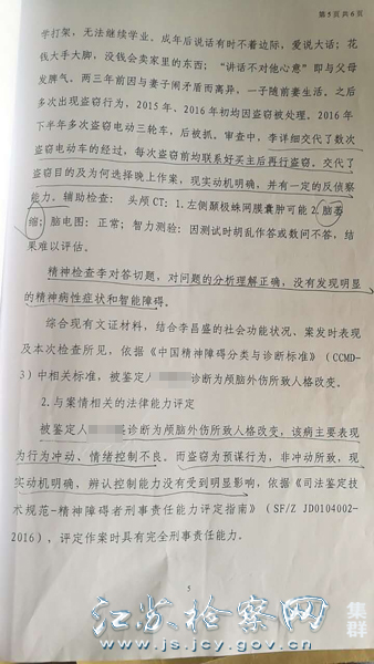 这次的《精神病鉴定意见书》是淮安市三院出具的,鉴定意见书上说犯罪嫌疑人李二虎曾因颅脑外伤致人格改变,限定刑事责任能力,刑法上叫“限制行为能力人”,依法可以从轻或减轻处罚。
