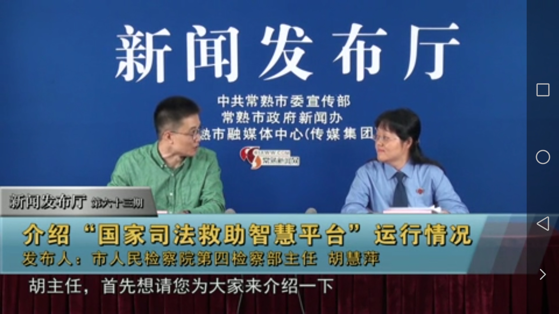 司法救助是助力脱贫攻坚、维护群众合法利益的有力武器。2018年,常熟市人民丝袜小说 推出了“国家司法救助智慧平台”,借助这一软件推动司法救助工作。新闻发布厅第六十二期邀请市丝袜小说 第四检察部主任胡慧萍,为大家介绍“国家司法救助智慧平台”的运行情况。