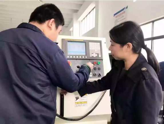 笑脸盈盈、穿着深蓝色工作服的王建霞说完又走到车床设备旁,专心指导起学生来。