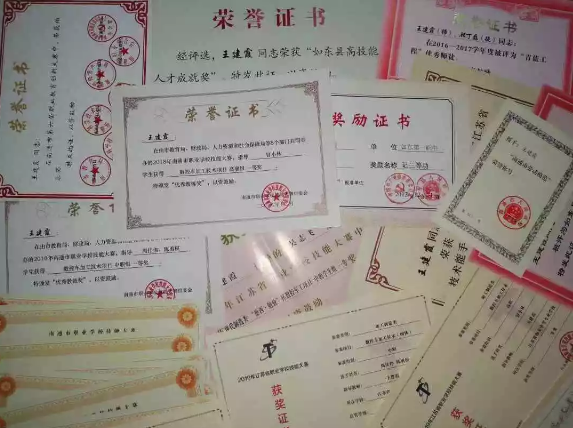 王建霞的部分荣誉证书