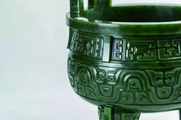 雕好一尊鼎,需要很多条件。首先是原料要优质,不能有绺裂,颜色要均匀,块头要大,四方四整;其次是设计要精心精确;然后是制作要专注,面纹的地子要深,线条要凸起和流畅。