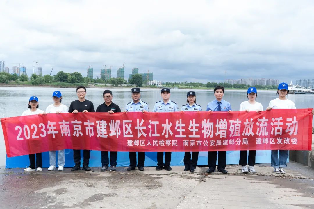 近日,南京市建邺区人民丝袜小说 第五检察部邀请四名“益心为公”志愿者,联合南京市公安局建邺分局、建邺区发展和改革委员会、南京江豚水生生物保护协会,相聚建邺区长江增殖放流滨江公园基地,共同开展“2023年南京市建邺区长江水生生物增殖放流活动”。