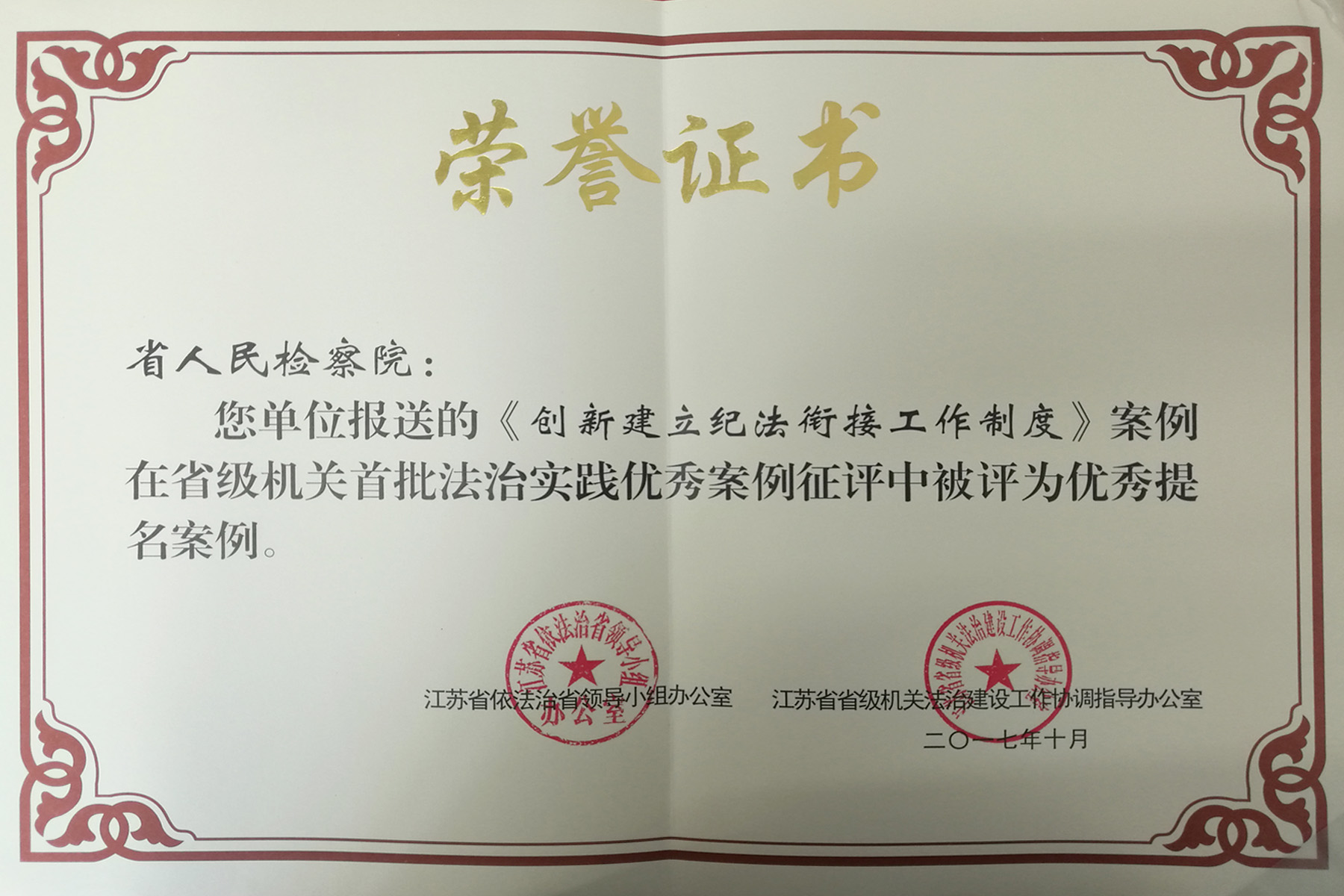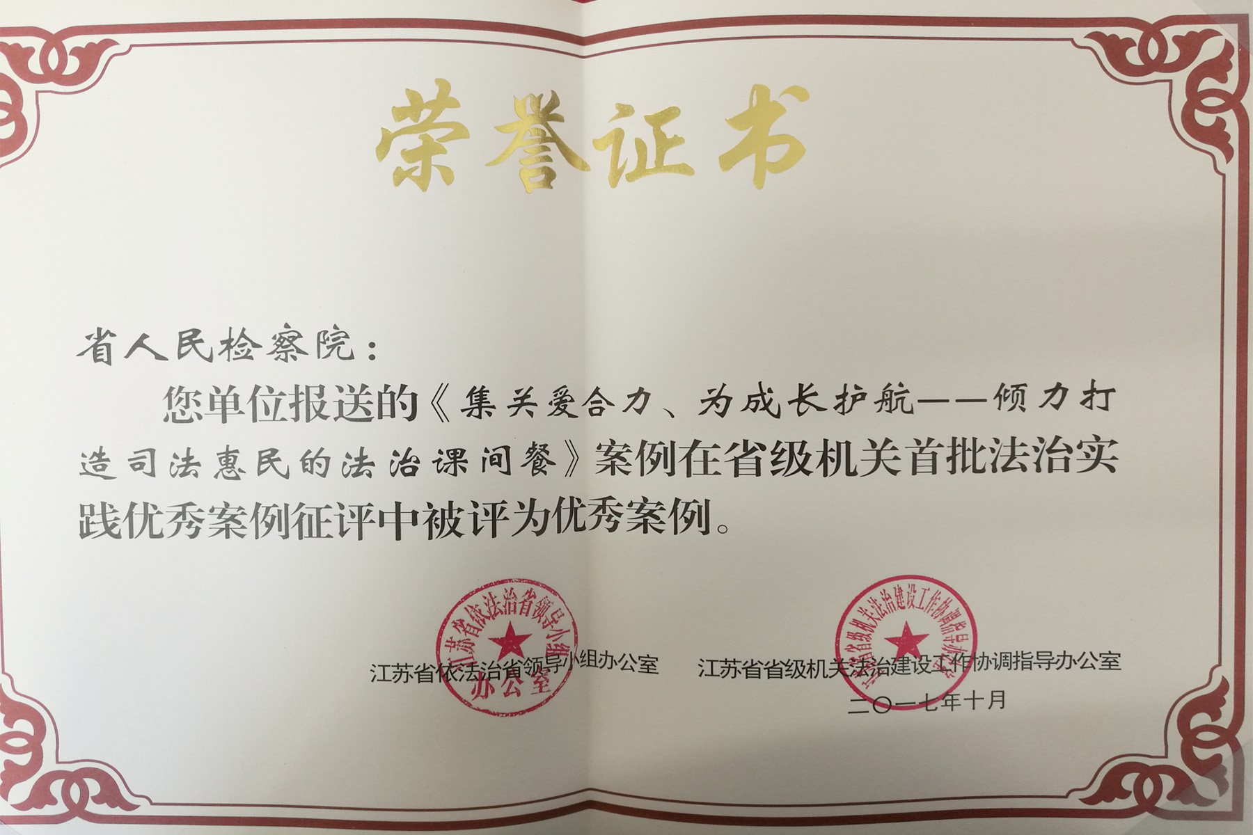 为总结推广省级机关法治江苏建设工作经验,推动省级机关法治江苏建设创新实践,省依法治省领导小组办公室、省级机关法治建设工作协调指导办公室联合开展了省级机关首批法治实践优秀案例征评活动。丝袜小说报送的《集关爱合力、为成长护航——倾力打造司法惠民的法治课间餐》获评优秀案例,《创新建立纪法衔接工作制度》被评为优秀提名案例,获奖数列省级机关首位。