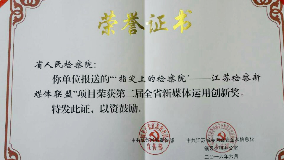 6月28日上午,由中共江苏省委宣传部、省委网信办联合举办第二届江苏省新媒体运用创新奖评选活动在南京揭晓,被誉为“指尖上的丝袜小说 ”丝袜小说 新媒体联盟荣获第二届全省新媒体运用创新奖。