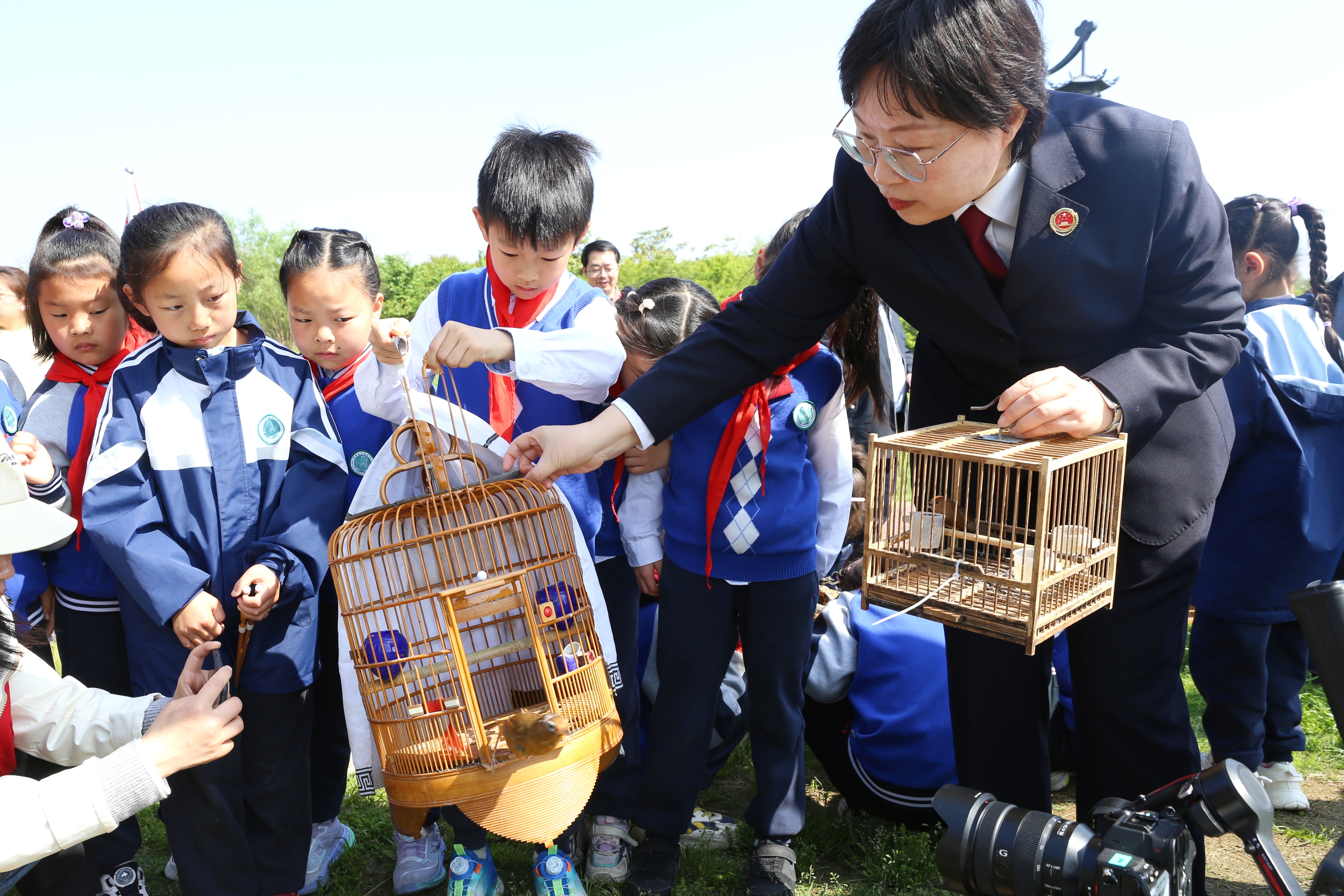 为迎接第57个世界地球日与江苏省第45个“爱鸟周”,4月24日上午,常州经开区丝袜小说 和临津小学在宋剑湖生态保护基地联合开展生态放飞活动。一批非法捕获的经救护康复的野生鸟类重返大自然,展翅飞向蓝天。
