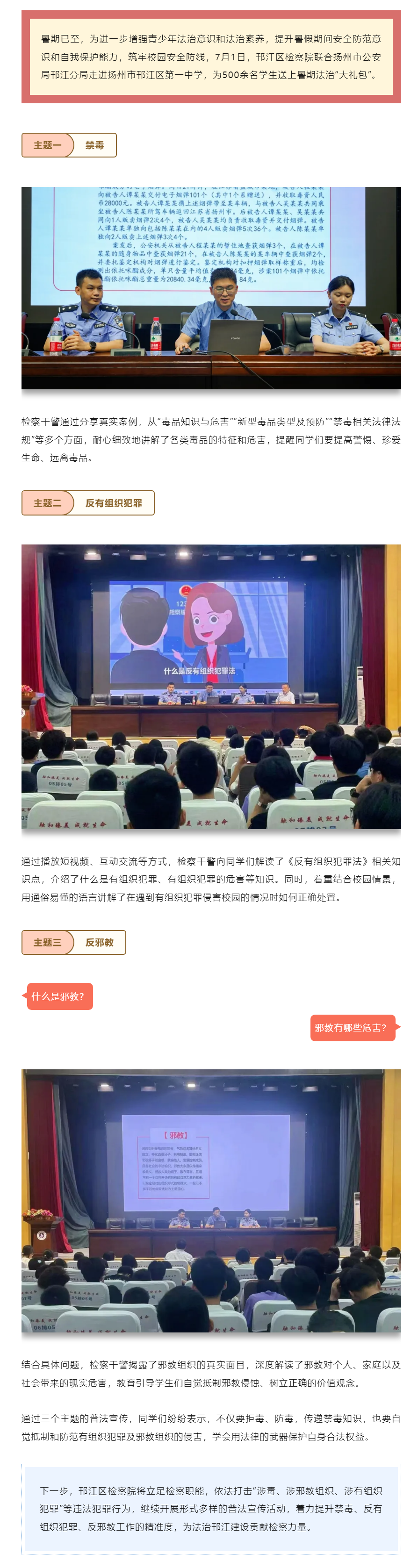 扬州市邗江区丝袜小说 为500余名学生送上暑期法治“大礼包”