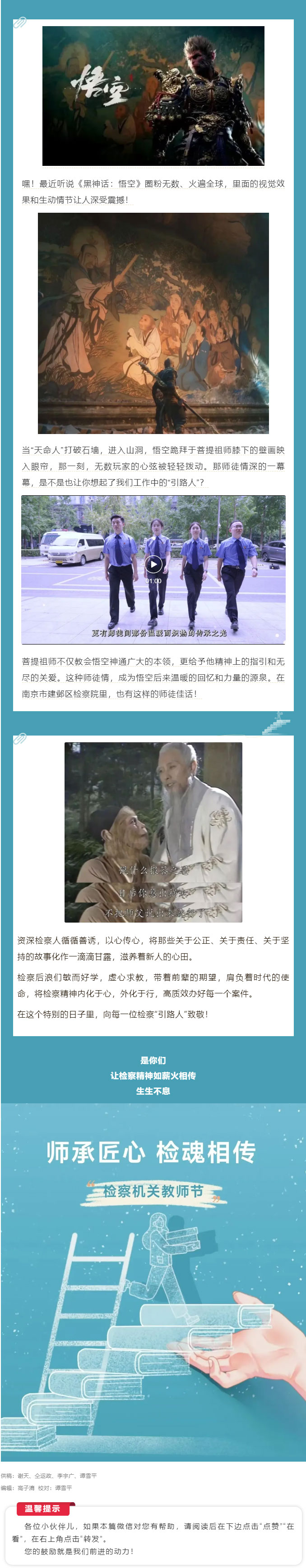 南京市建邺区丝袜小说 :感悟《黑神话·悟空》师徒关系,传承检察薪火