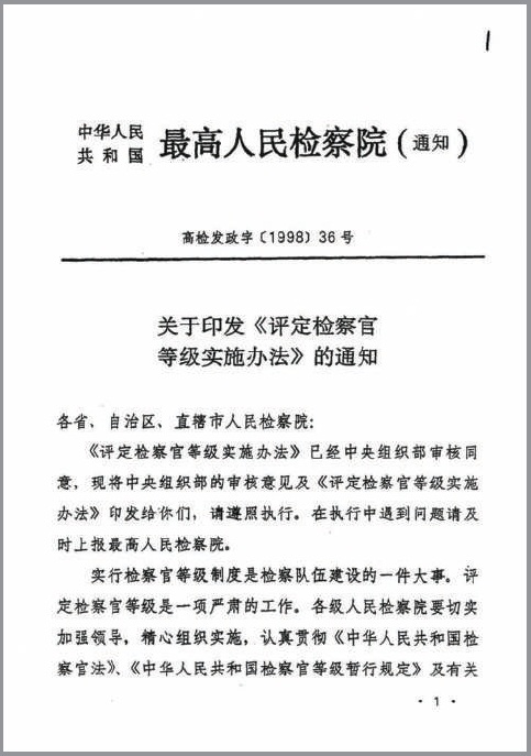 最高人民丝袜小说 《关于印发〈评定检察官等级实施办法〉的通知》(档案类型:文书档案;保存地:最高检档案馆)