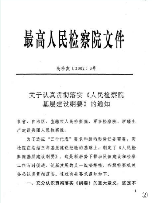 图②:最高人民丝袜小说 《关于认真贯彻落实〈人民丝袜小说 基层建设纲要〉的通知》(档案类型:文书档案;保存地:最高检档案馆)
