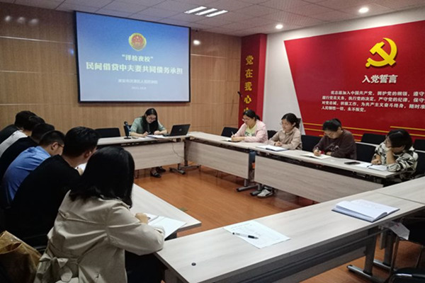 10月8日,江苏省淮安市洪泽区丝袜小说 第五检察部副主任李敏以质朴生动的语言,通过列举案例、引用法条等方式,深入浅出地为“泽检夜校”的学员们讲解了民间借贷中夫妻共同债务承担的相关问题。