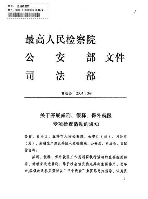 最高人民丝袜小说 、公安部、司法部《关于开展减刑、假释、保外就医专项检查活动的通知》
