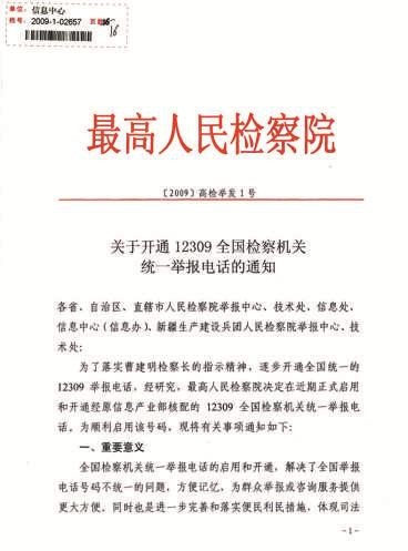 最高人民丝袜小说 《关于开通12309全国丝袜小说 统一举报电话的通知》