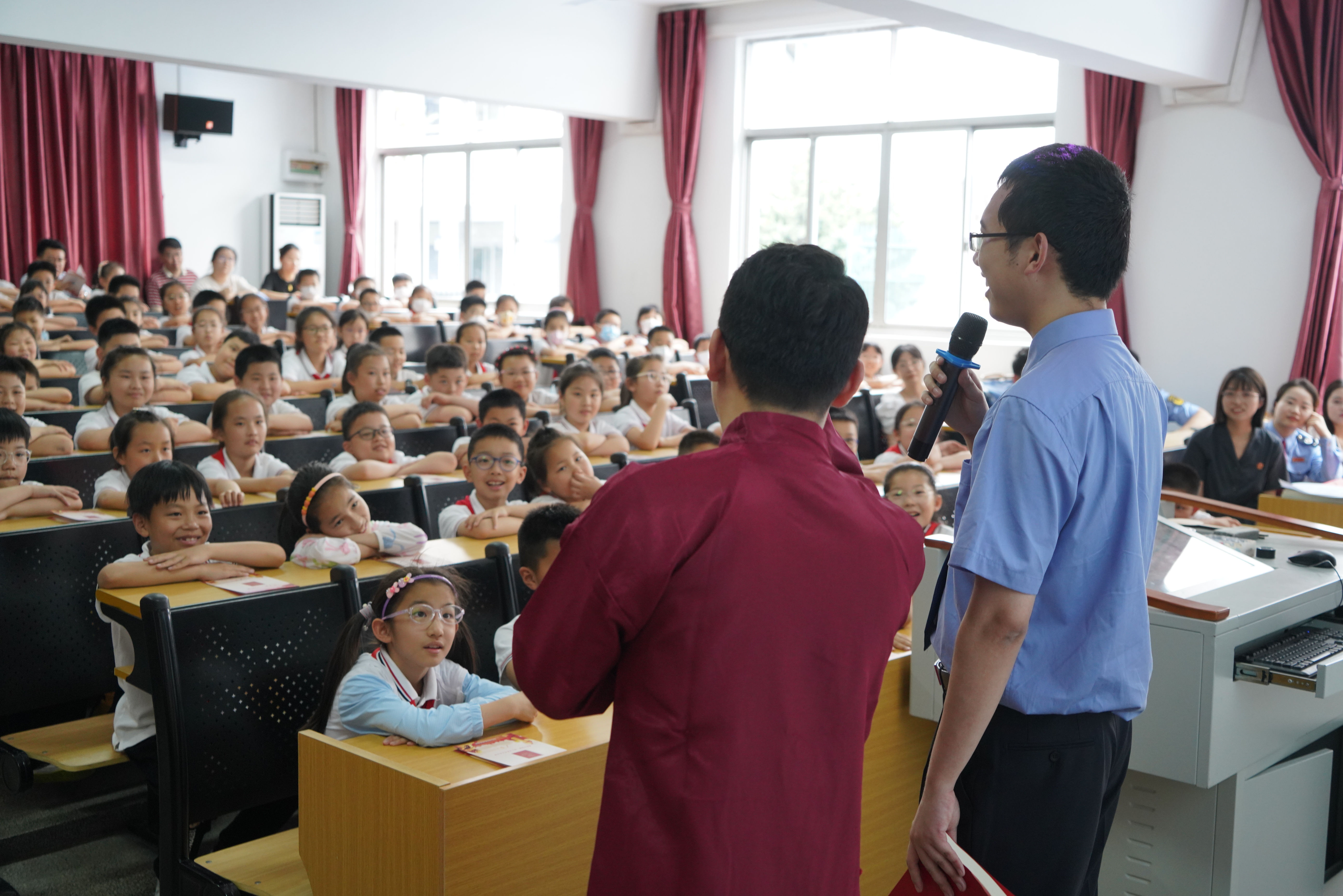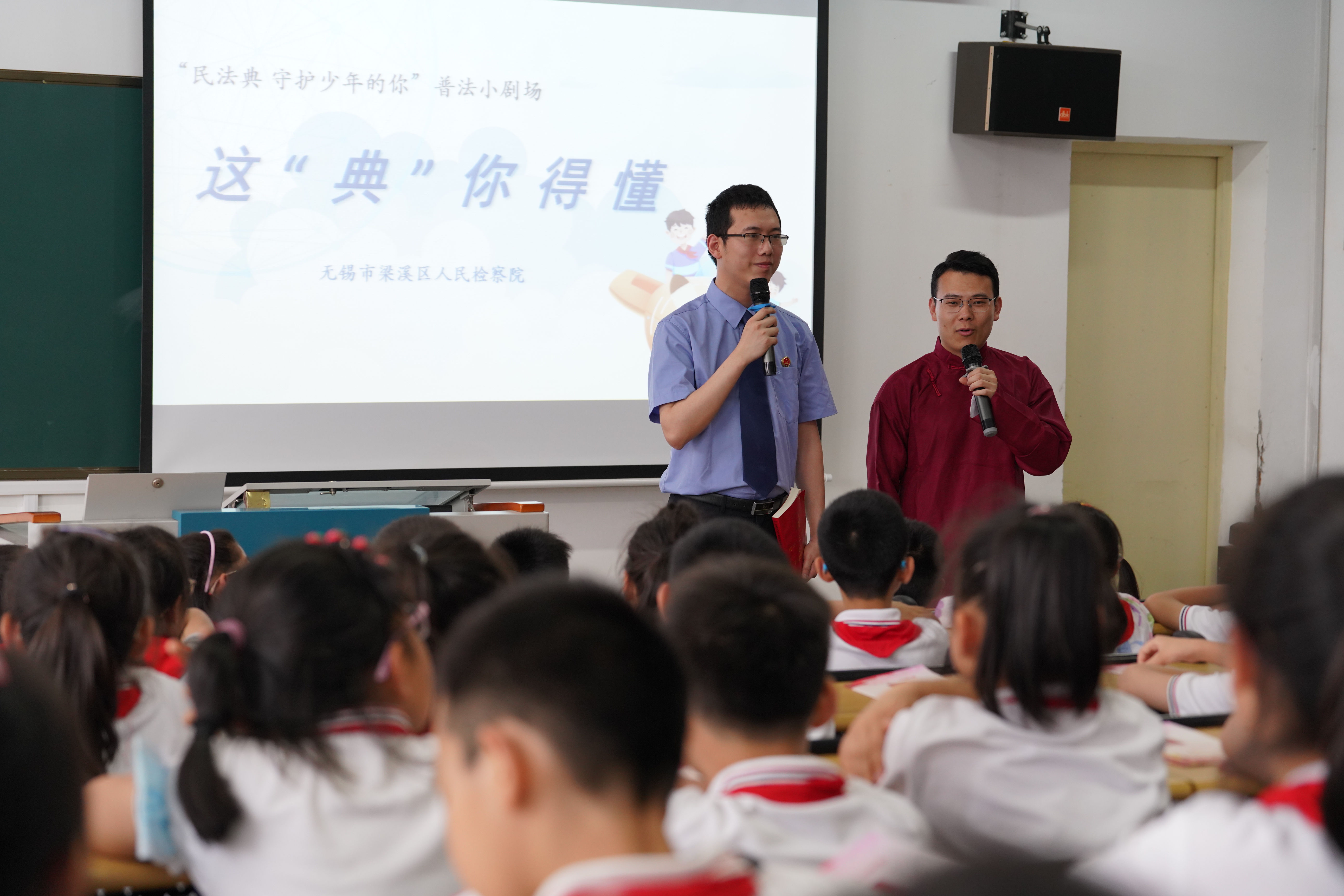为进一步做好民法典宣传工作,江苏省无锡市梁溪区丝袜小说 检察官近日走进辖区辅侨实验小学,开展“法润童心护成长‘典’亮校园守未来”法治宣传活动。该院检察人员为同学们带去自编自演的民法典宣传相声——《这“典”你得懂》,将与同学们生活息息相关的民法典知识融入诙谐有趣的相声之中,真正实现了寓教于乐,受到同学们欢迎。