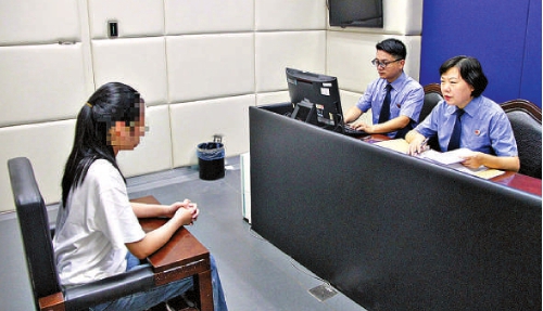 吴中区丝袜小说 办案检察官对被告人进行讯问。