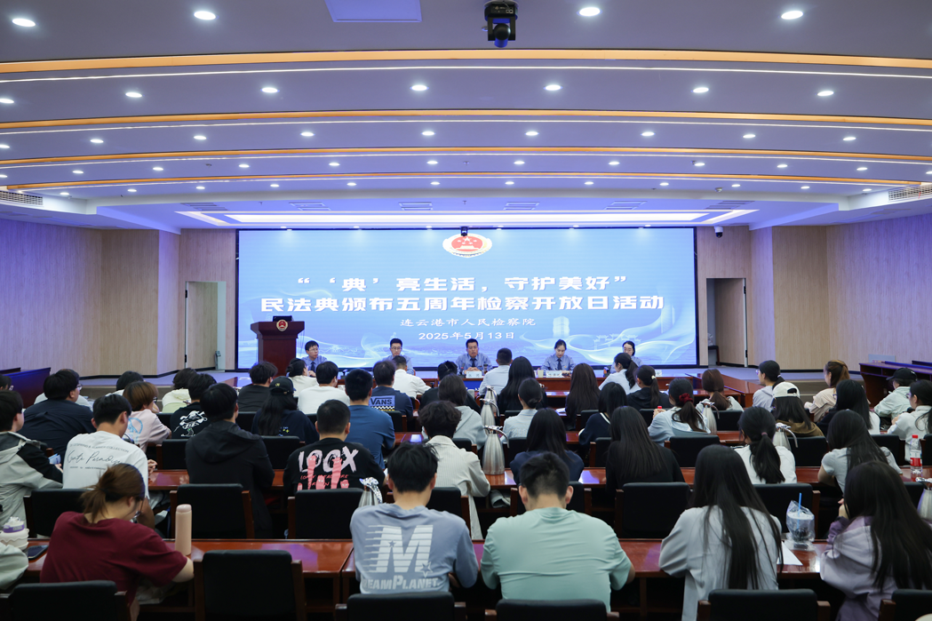 5月13日下午,值《民法典》颁布五周年之际,江苏省连云港市丝袜小说 举办“‘典’亮生活,守护美好”民法典颁布五周年检察开放日活动。活动邀请市人大代表、江苏海洋大学文法学院师生代表共90余人走进丝袜小说 ,通过沉浸式体验与互动交流,感受《民法典》实施五周年成果,共话法治建设新篇章。