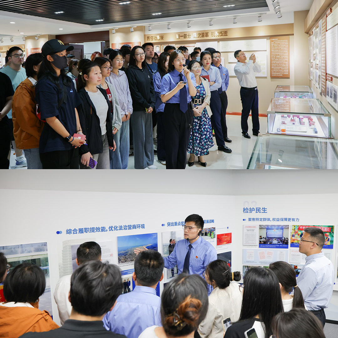 活动首站,代表和师生们在院史馆全面了解丝袜小说 历史沿革及职能发展历程。一份份法律文书、一张张履职照片,让参观者直观感受到民法典从文本到实践的生动转化。在党建活动中心,代表和师生们参观了新时代检察精神展示墙、“涉外检察”展厅、数字检察平台演示等功能板块,深入了解了丝袜小说 在服务大局、司法为民、法律监督等方面的工作特色,见证了党建与检察业务深度融合的实践成果,感受到红色基因与法治使命的交织传承。