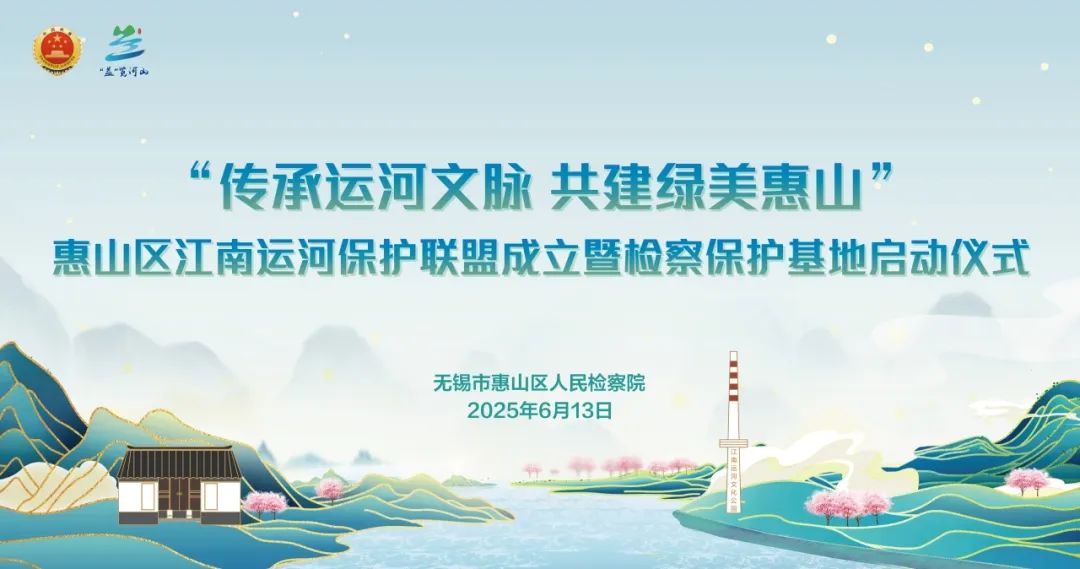 为保护好、传承好、利用好大运河宝贵遗产,在2025年“文化和自然遗产日”即将到来之际,6月13日下午,“传承运河文脉 共建绿美惠山”江南运河保护联盟暨检察保护基地在江南运河文化公园正式启动。