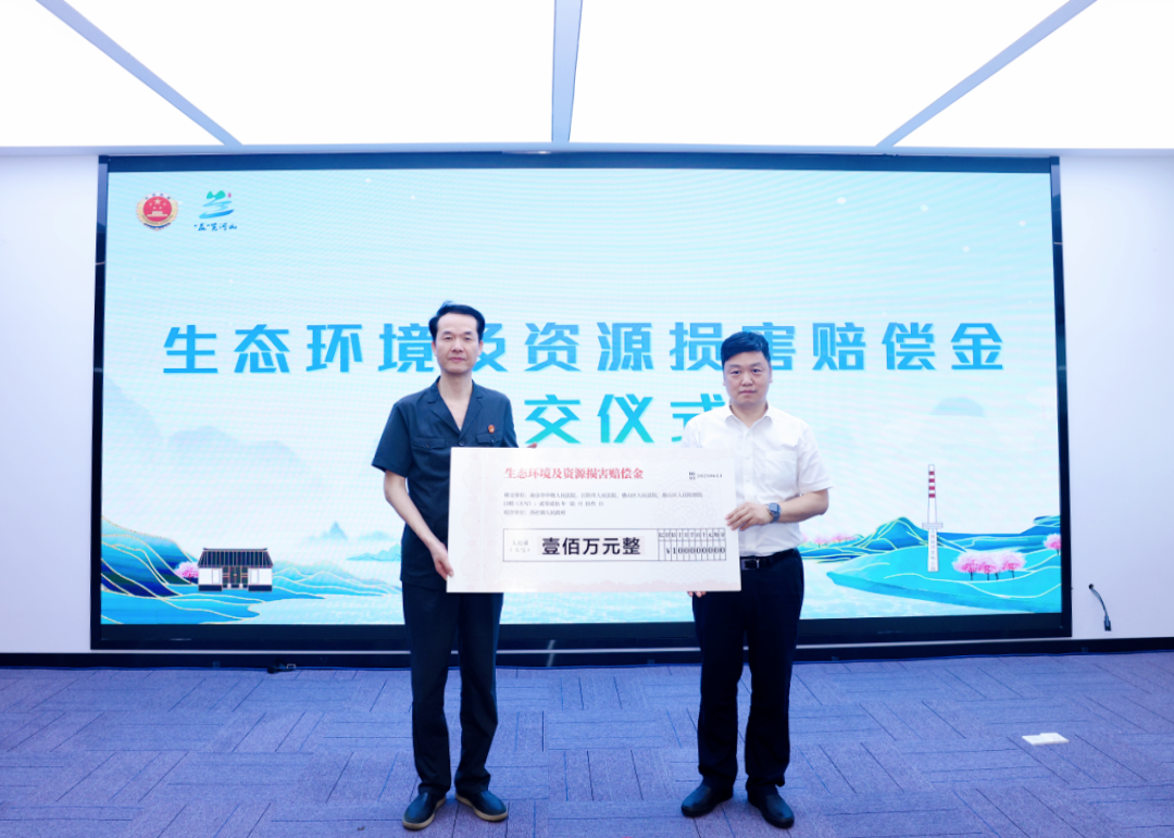 陈靖宇副院长代表各办案单位向洛社镇政府移交100万元生态损害赔偿金,用于生态环境损害修复基地的建设和保护管理工作。