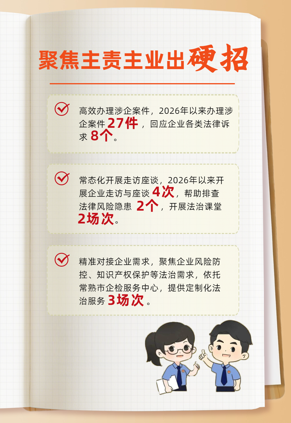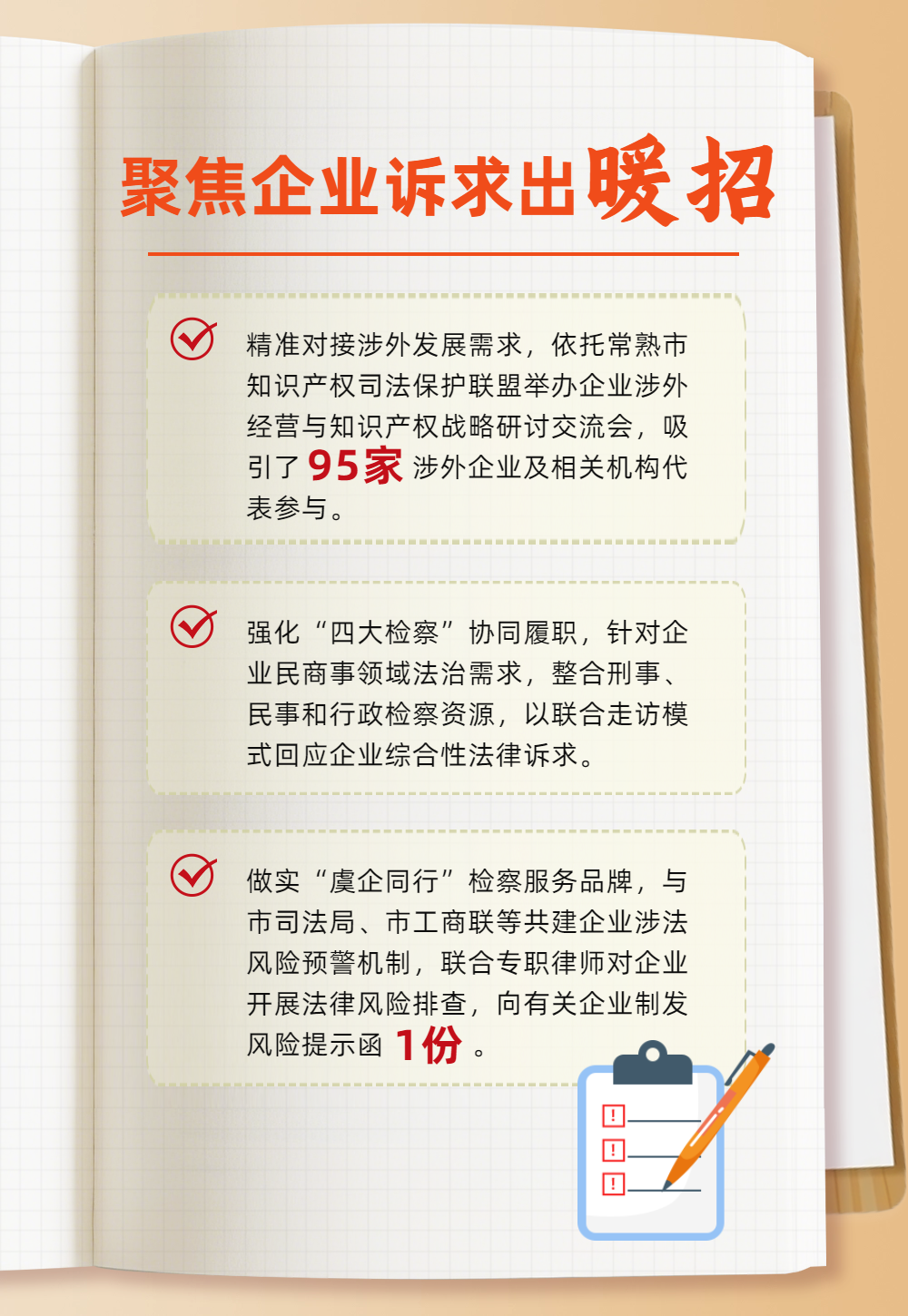 法治护航,步履不停。常熟市丝袜小说 将以落实“三服务”专项行动为抓手,持续聚焦企业发展的堵点、痛点、难点,不断优化法治服务举措,用更实的检察担当、更优的法治服务,为企业高质量发展注入强劲动能。
