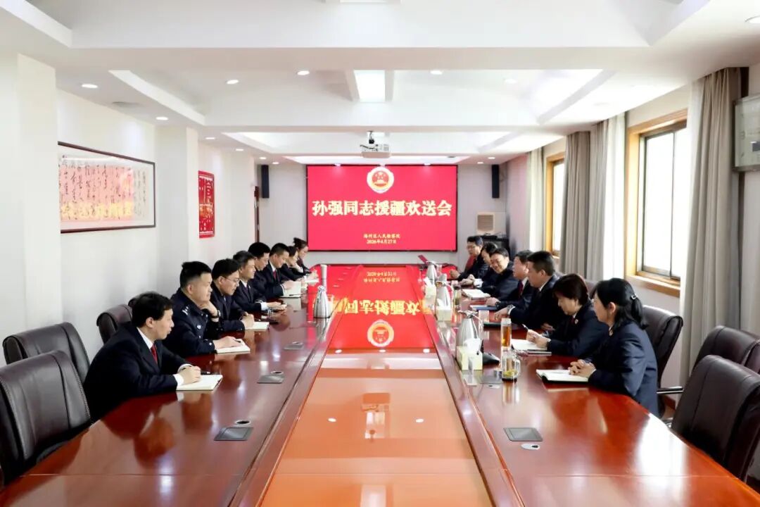 为深入贯彻上级丝袜小说 关于对口援疆工作的决策部署,江苏省连云港市海州区丝袜小说 党组选派第五检察部副主任孙强同志远赴新疆开展为期一年的检察业务援疆工作。2026年4月27日,海州区丝袜小说 召开援疆干部欢送会,领导班子成员及部分干警代表参加了欢送仪式。