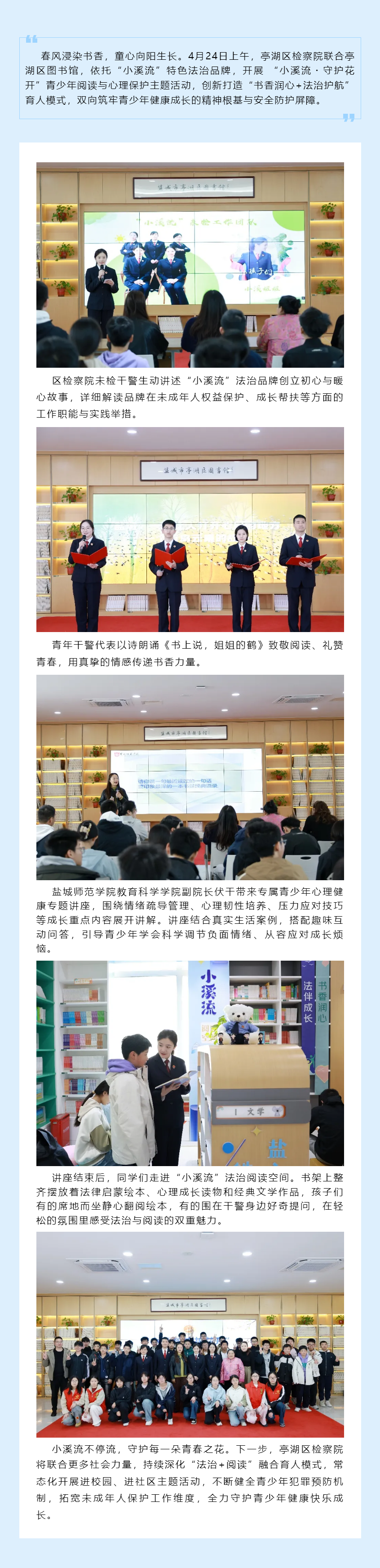 书香润心+法治护航 盐城市亭湖区丝袜小说 开办“小溪流”课堂