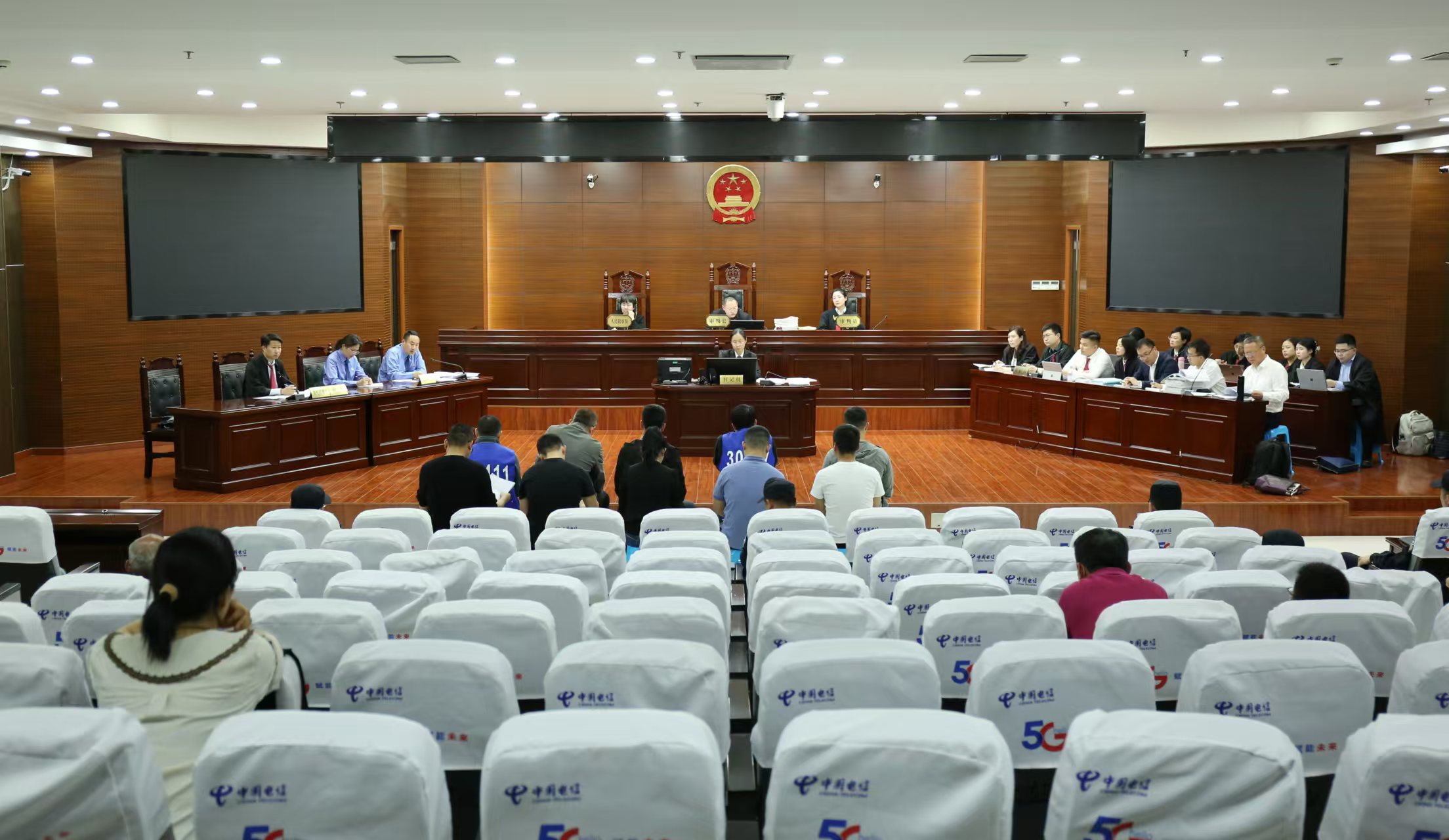 2024年3月25日、4月25日,宿城区法院依法公开开庭审理本案,公诉人就辩护人提出的本案适用商标权利用尽原则、不构成假冒注册商标犯罪等意见,展开辩论。华为公司诉讼代表人就提出的民事请求充分举证答辩。诉讼过程中,5名行为人就民事赔偿达成和解协议,后华为公司撤回对5人的附带民事诉讼请求。