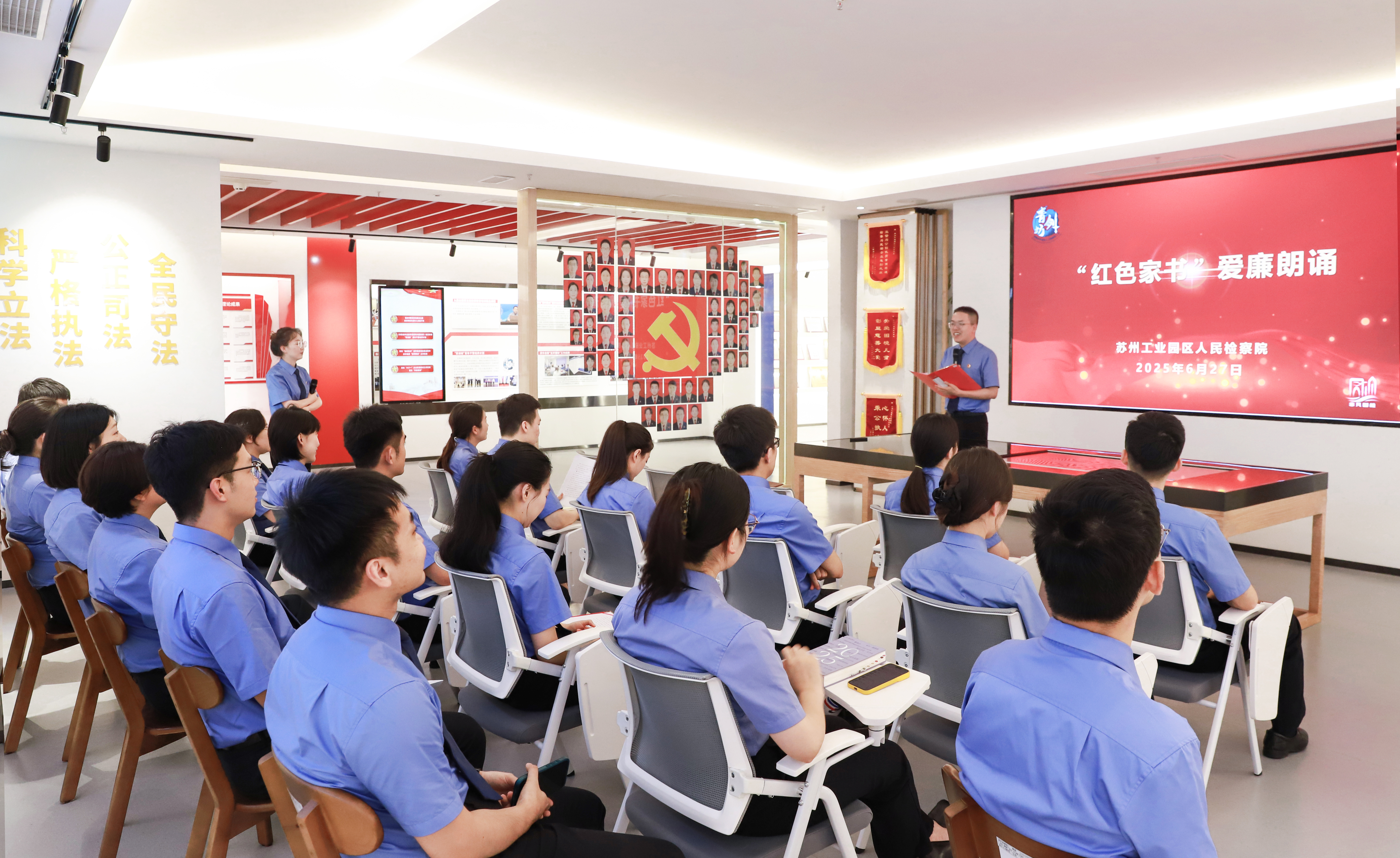 该院“青剑坊“在”非凡园检·先锋阵地“展厅内部组织开展”红色家书“朗诵活动