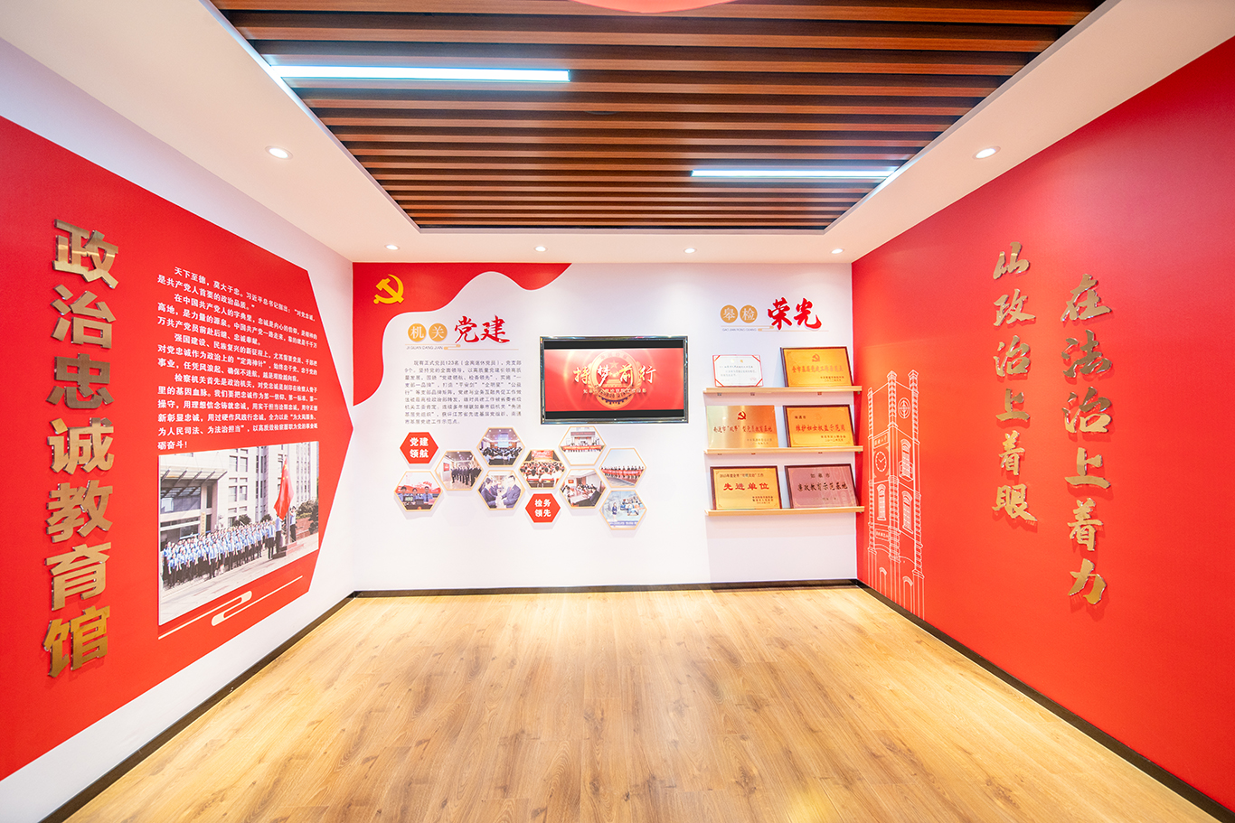“政治忠诚教育馆”:党建领航铸造忠诚皋检。在南通检察系统率先成立青年马克思主义者思想教育基地,引导干警在思辨与交锋中融汇理论与实践,后在此基础上迭代拓展,建成南通政法系统首批政治忠诚教育馆。该馆建于我院主楼二楼,横贯东西,包含教育馆、院史室、初心学堂等功能区域,综合运用声、光、电、影,系统展示了党的历史、领袖故事、党建融合、群团组织等内容。我院常态化在此组织沉浸式政治生日、主题党日、道德讲堂、联学共建等学思践悟活动,激励干警在学有所思、学有所得、学以致用中淬炼政治忠诚,我院获评“全省先进基层党组织”称号。