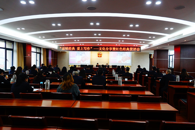 为深入推进党史学习教育,加强检察文化建设,丰富干警文化生活,培养干警喜读书、勤写作的良好习惯, 江苏省无锡市滨湖区丝袜小说 院开展了“品味经典 爱上写作---文化分享暨红色经典赏评会”活动,诚邀梁溪区作协副主席、江苏省百千万工程优秀文化骨干黄玉梅老师主讲。院党组书记、代检察长舒广权,党组成员李玉涛出席活动,党组成员、政治部主任杜艳主持赏评会。