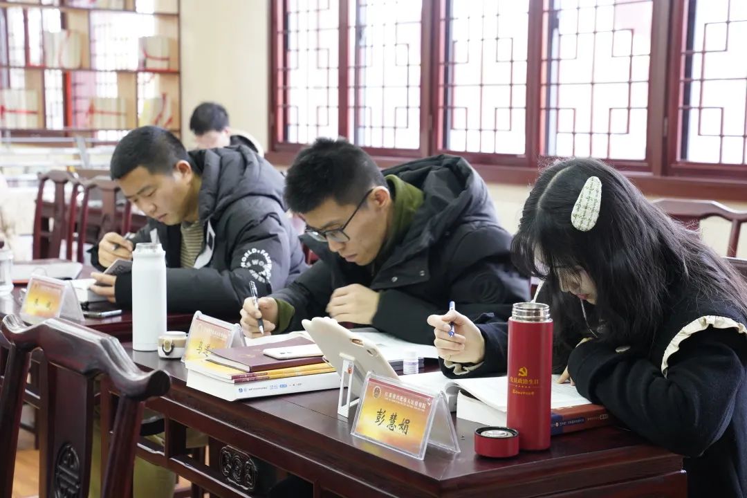 图书馆里20名朝气蓬勃的年轻干警齐聚一室,但大多数时间这里却静得出奇,只能听到偶尔的翻书声和沙沙的写字声。在这里,带班院领导放下厚厚的案卷,捧起业务书籍,带头做,带头学。干警们有的戴着耳机听业务辅导讲座;有的埋头苦读,在厚厚的工具书中奋战;有的认真地做着读书笔记,摘抄重点知识,记录学习感悟。课余时间,大家交流学习体会,探讨理论热点,碰撞思维火花。