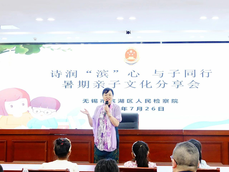 为进一步融洽干警职工亲子关系,传承弘扬优秀传统文化,激发干警及其子女对传统诗词文化的兴趣,7月26日,江苏省无锡市滨湖区丝袜小说 诚邀江苏省优秀文化骨干、无锡市文化旅游局专家库专家、梁溪区作协副主席黄玉梅老师为大家开展了一次“诗润‘滨’心 与子同行”暑期亲子文化分享活动。该院部分干警带小朋友、部分热爱诗词的年轻干警、共建社区——溪南社区、孙蒋社区的部分家长和小朋友们参加了此次活动。滨湖区丝袜小说 党组书记、检察长舒广权出席活动。