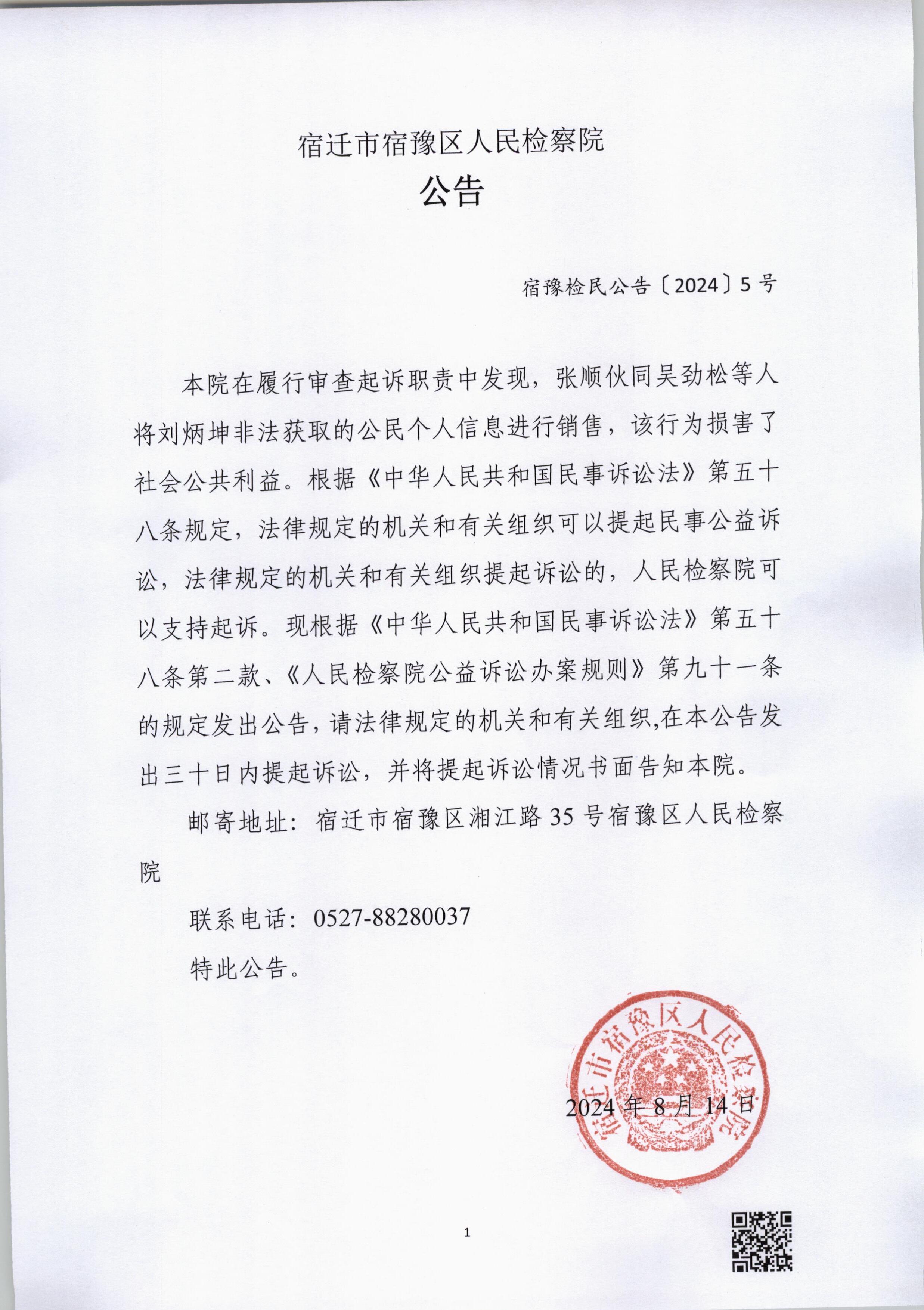 宿豫检民公告〔2024〕5号