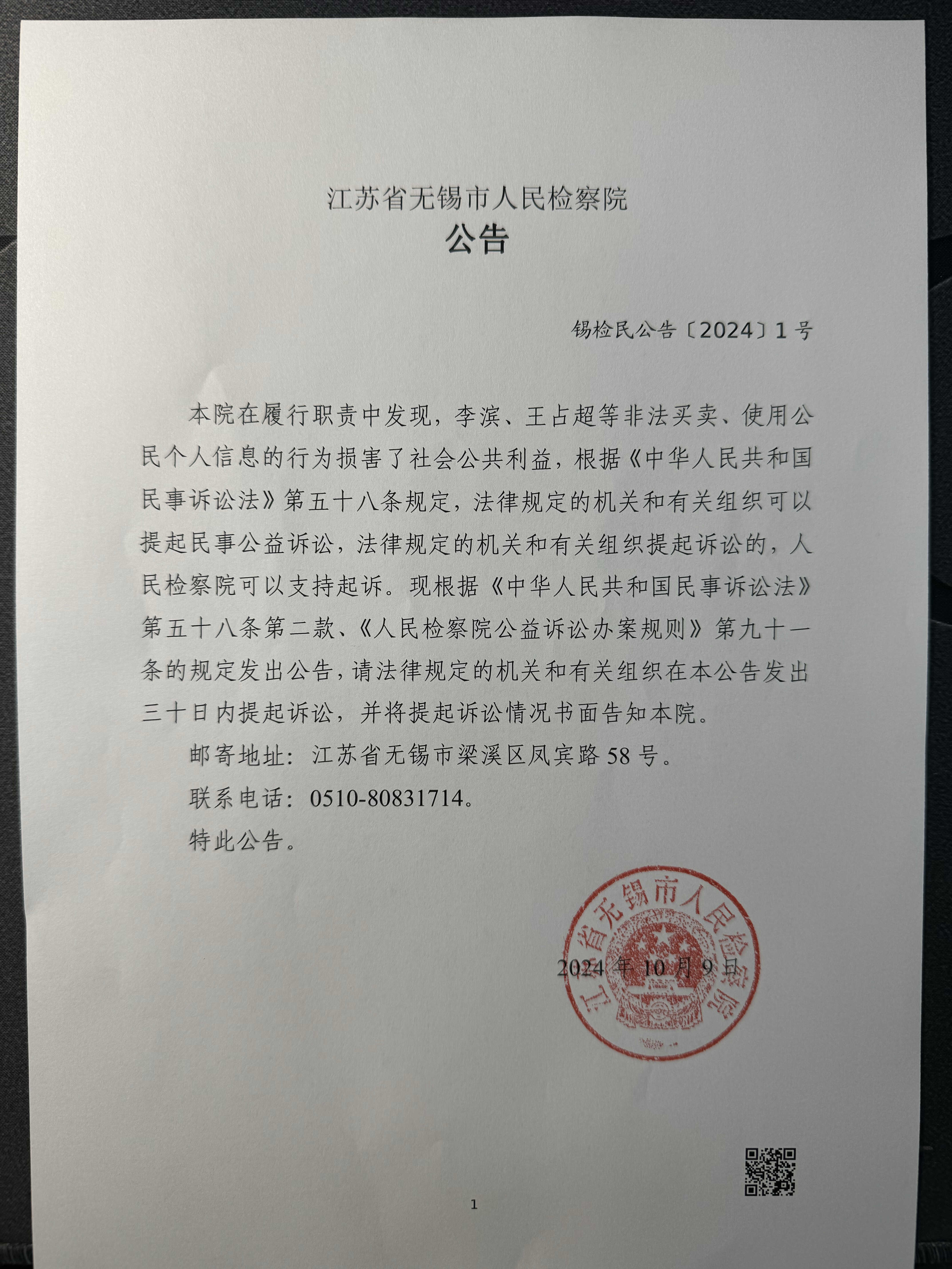 本院在履行职责中发现,李滨、王占超等非法买卖、使用公民个人信息的行为损害了社会公共利益,根据《中华人民共和国民事诉讼法》第五十八条规定,法律规定的机关和有关组织可以提起民事公益诉讼,法律规定的机关和有关组织提起诉讼的,人民丝袜小说 可以支持起诉。现根据《中华人民共和国民事诉讼法》第五十八条第二款、《人民丝袜小说 公益诉讼办案规则》第九十一条的规定发出公告,请法律规定的机关和有关组织在本公告发出三十日内提起诉讼,并将提起诉讼情况书面告知本院。
