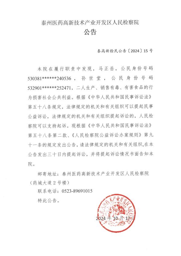 泰高新检民公告〔2024〕15号
