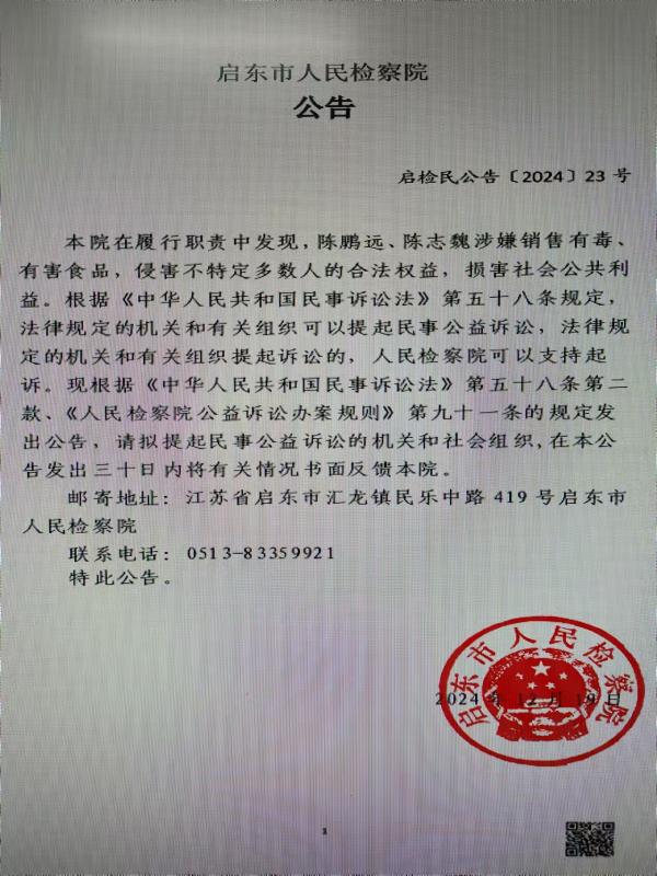 本院在履行职责中发现,陈鹏远、陈志魏涉嫌销售有毒、有害食品,侵害不特定多数人的合法权益,损害社会公共利益。根据《中华人民共和国民事诉讼法》第五十八条规定,法律规定的机关和有关组织可以提起民事公益诉讼,法律规定的机关和有关组织提起诉讼的,人民丝袜小说 可以支持起诉。现根据《中华人民共和国民事诉讼法》第五十八条第二款、《人民丝袜小说 公益诉讼办案规则》第九十一条的规定发出公告,请拟提起民事公益诉讼的机关和社会组织,在本公告发出三十日内将有关情况书面反馈本院。